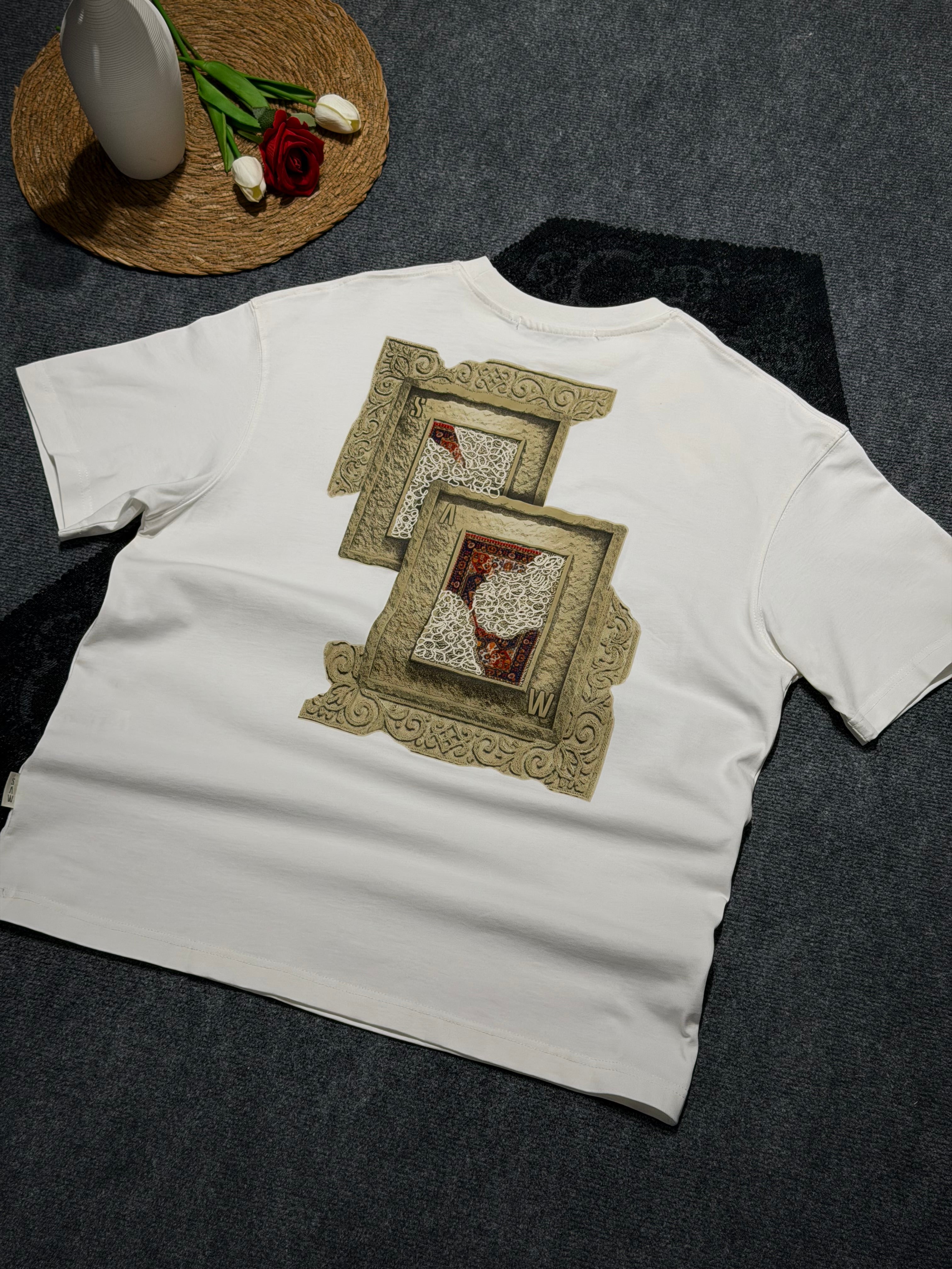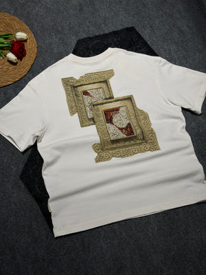 Antik Tablo Baskılı Oversize T-shirt Beyaz