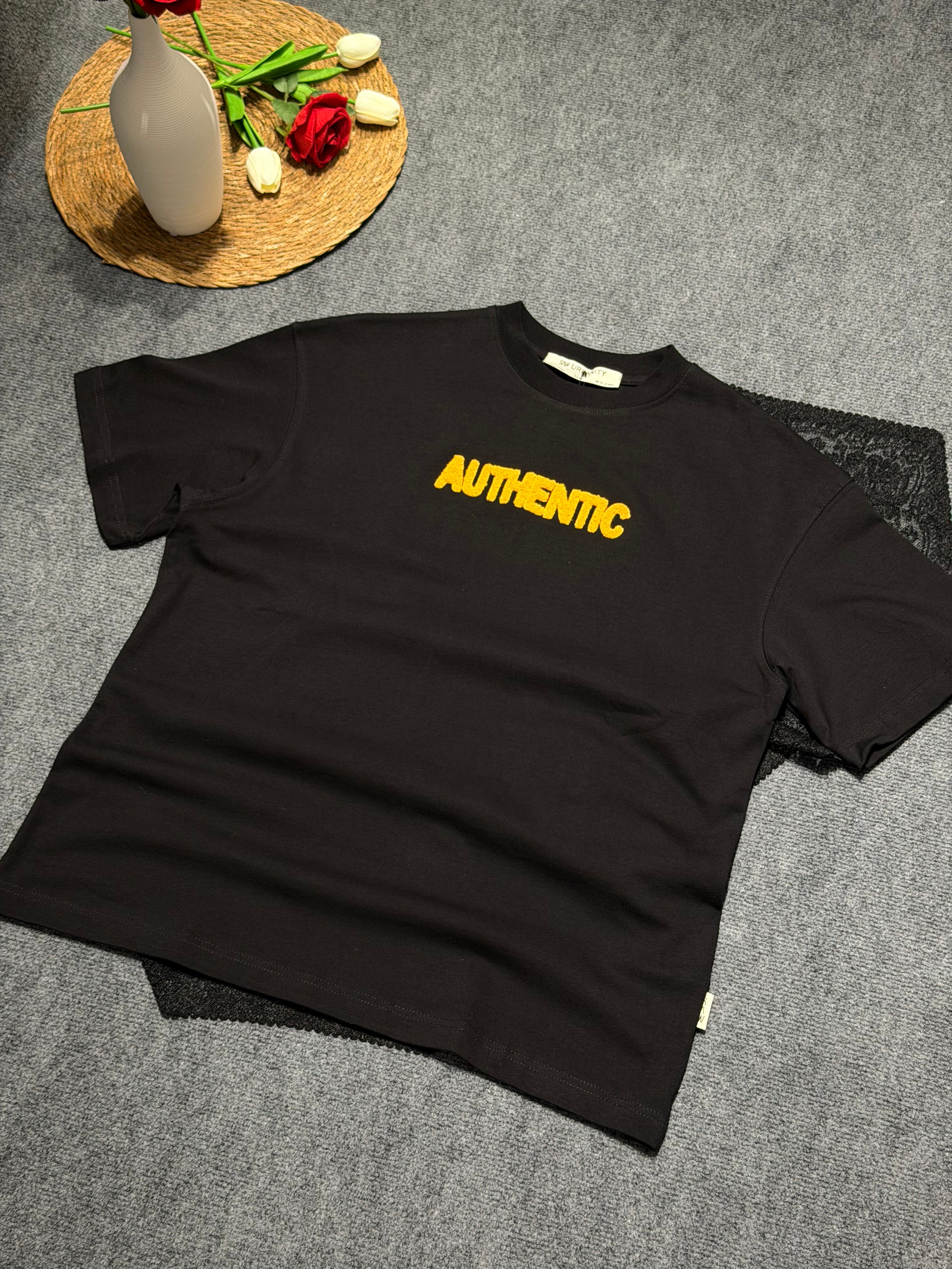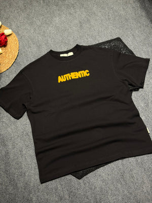 Authentic Desenli Oversize T-shirt Siyah