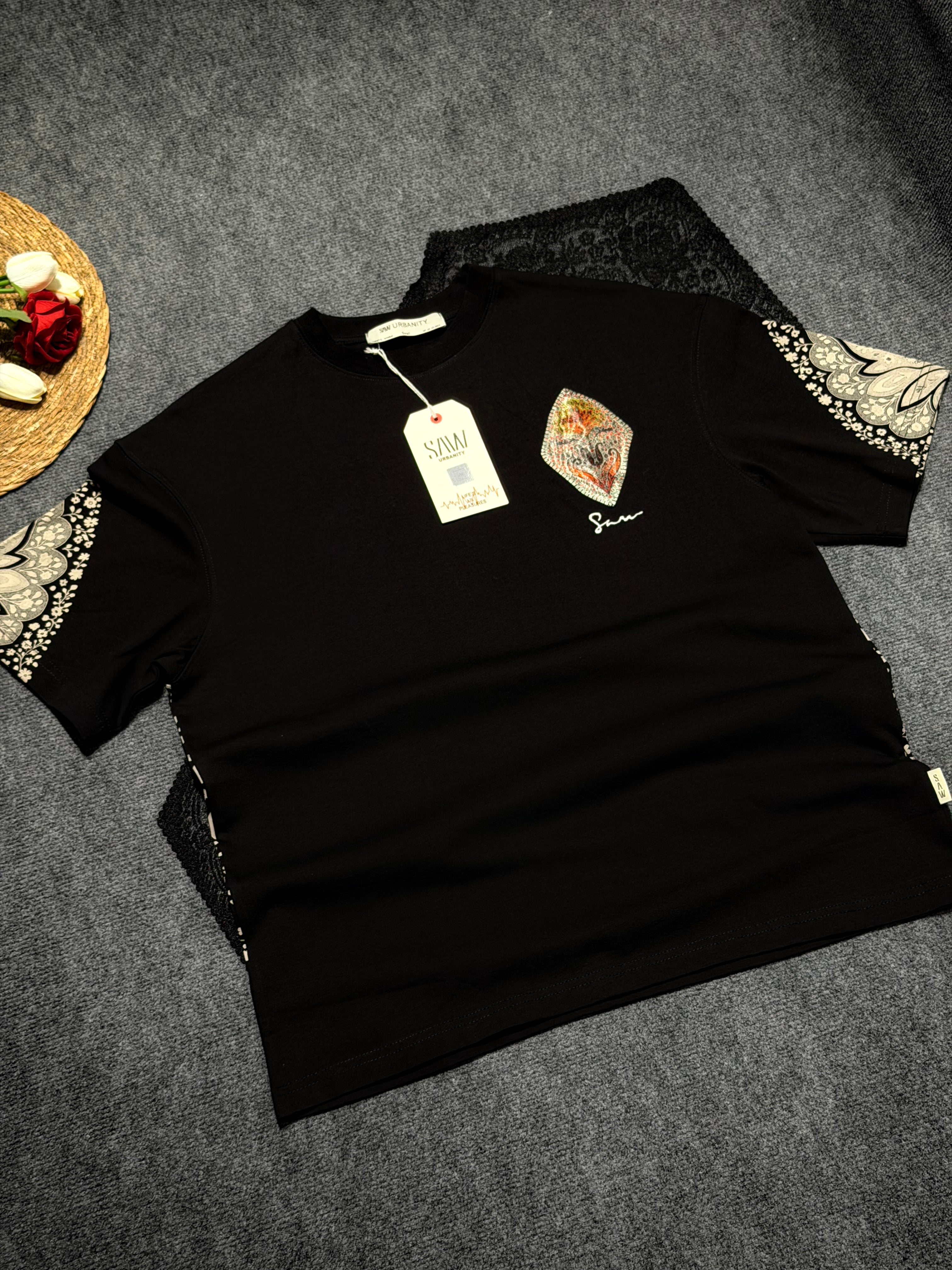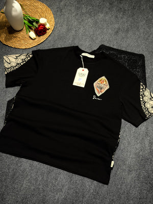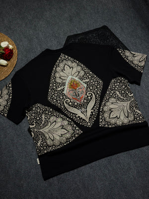Baklava Desenli Oversize T-shirt Siyah