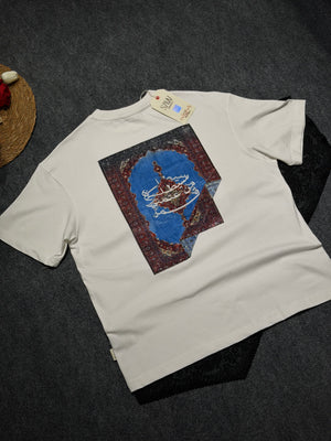 Etnik Halı Desenli Oversize T-shirt Beyaz