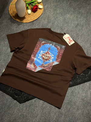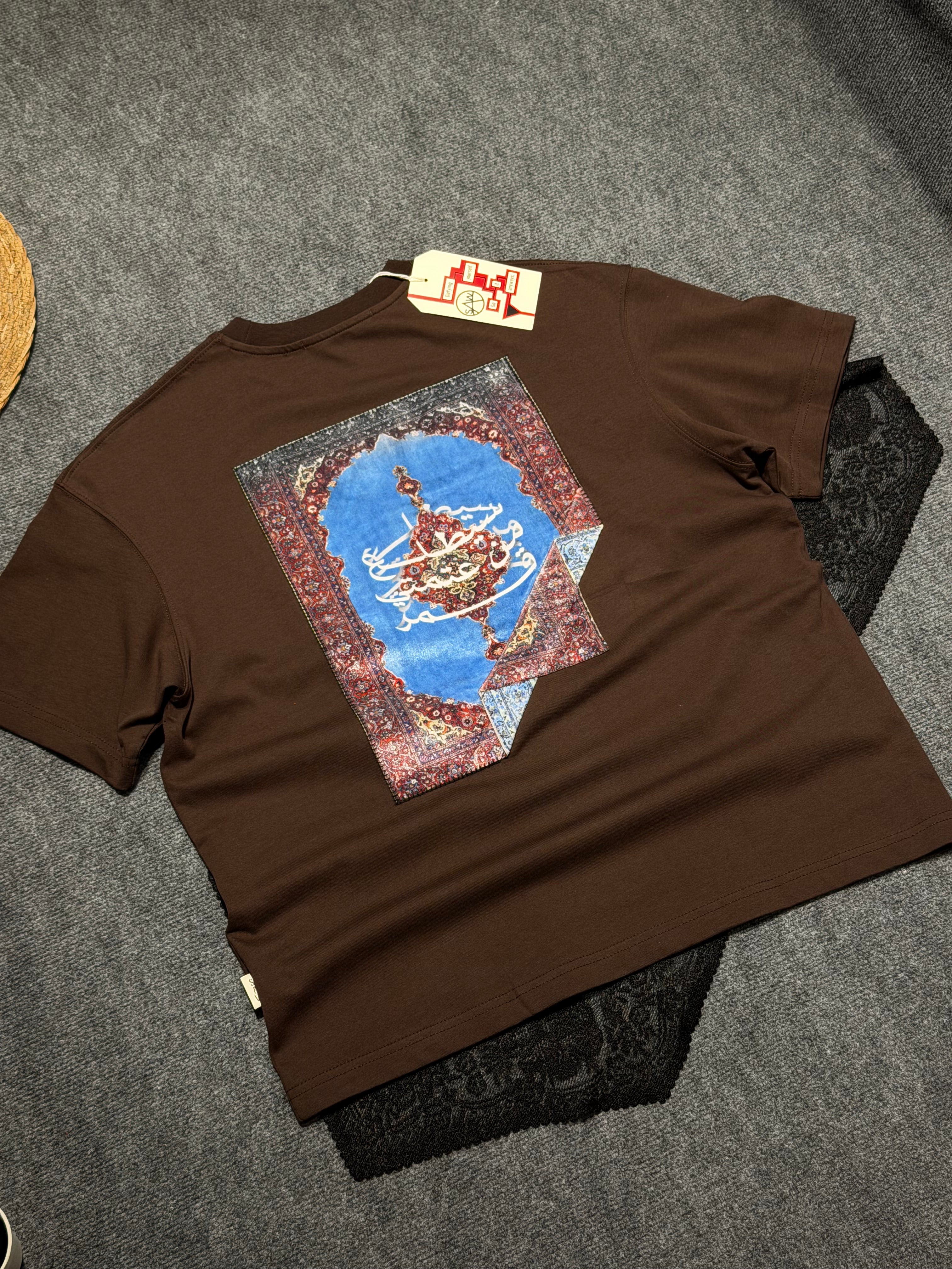 Etnik Halı Desenli Oversize T-shirt Kahverengi