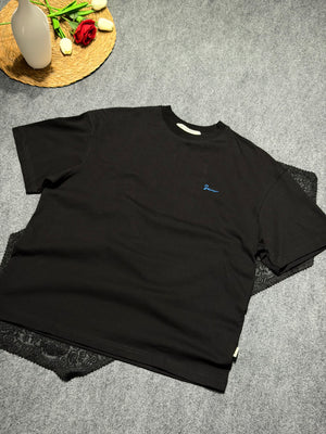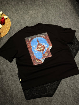 Etnik Halı Desenli Oversize T-shirt Siyah