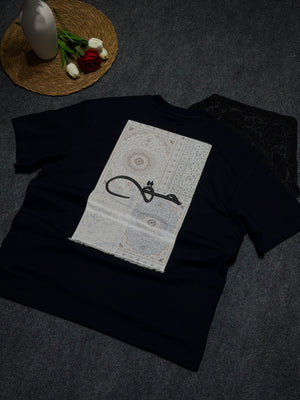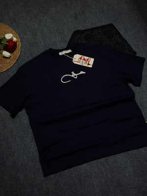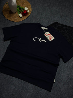 Hak Nakış Desenli Oversize T-shirt Lacivert