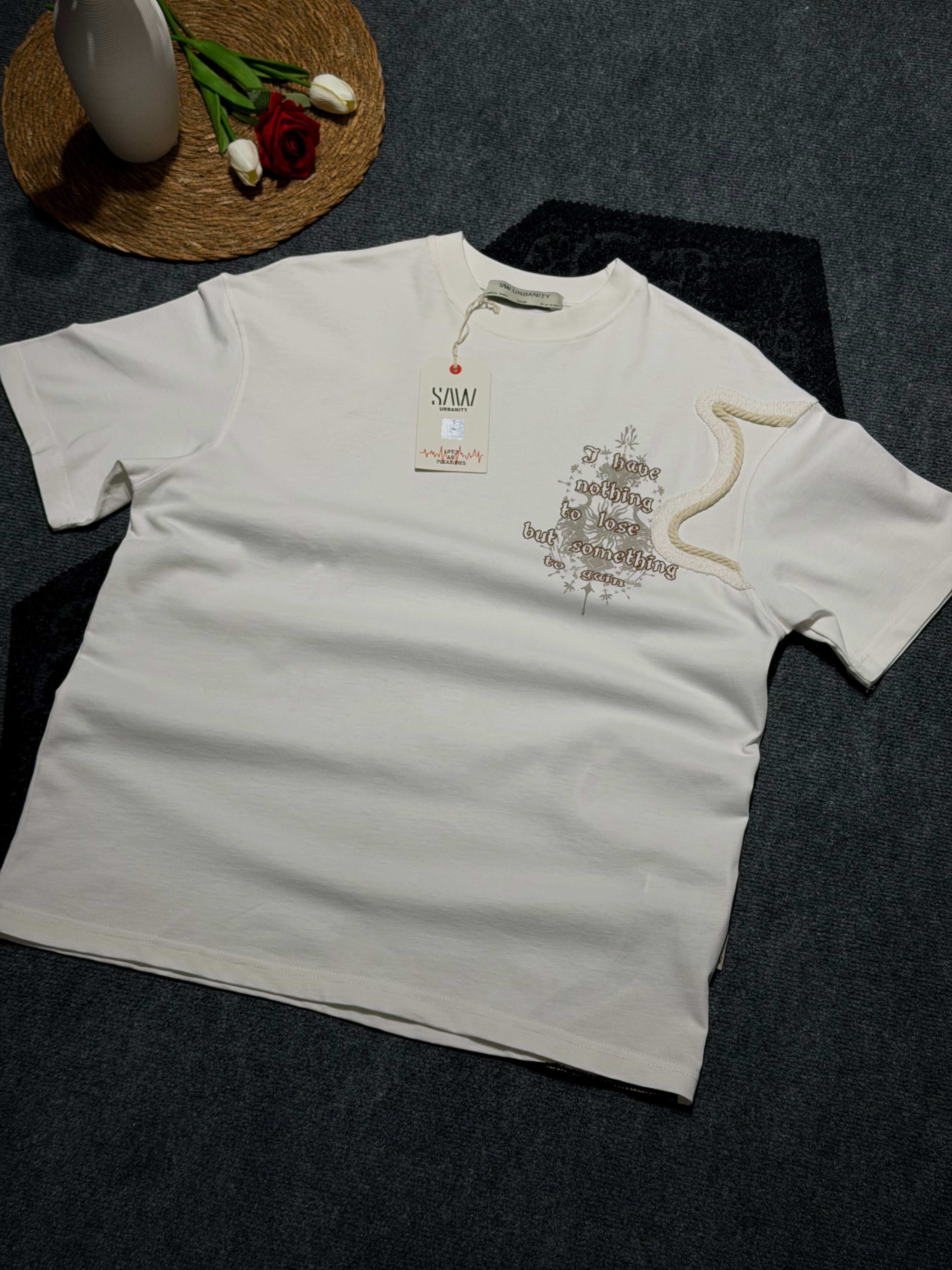 Modern ve özgün baskı tasarımıyla öne çıkan oversize tişört, %100 pamuk kumaşı sayesinde gün boyu rahatlık sağlar. Nefes alabilen yapısı ile yaz-kış kullanıma uygundur. Rahat kesimi sayesinde streetwear ve günlük kombinler için idealdir.