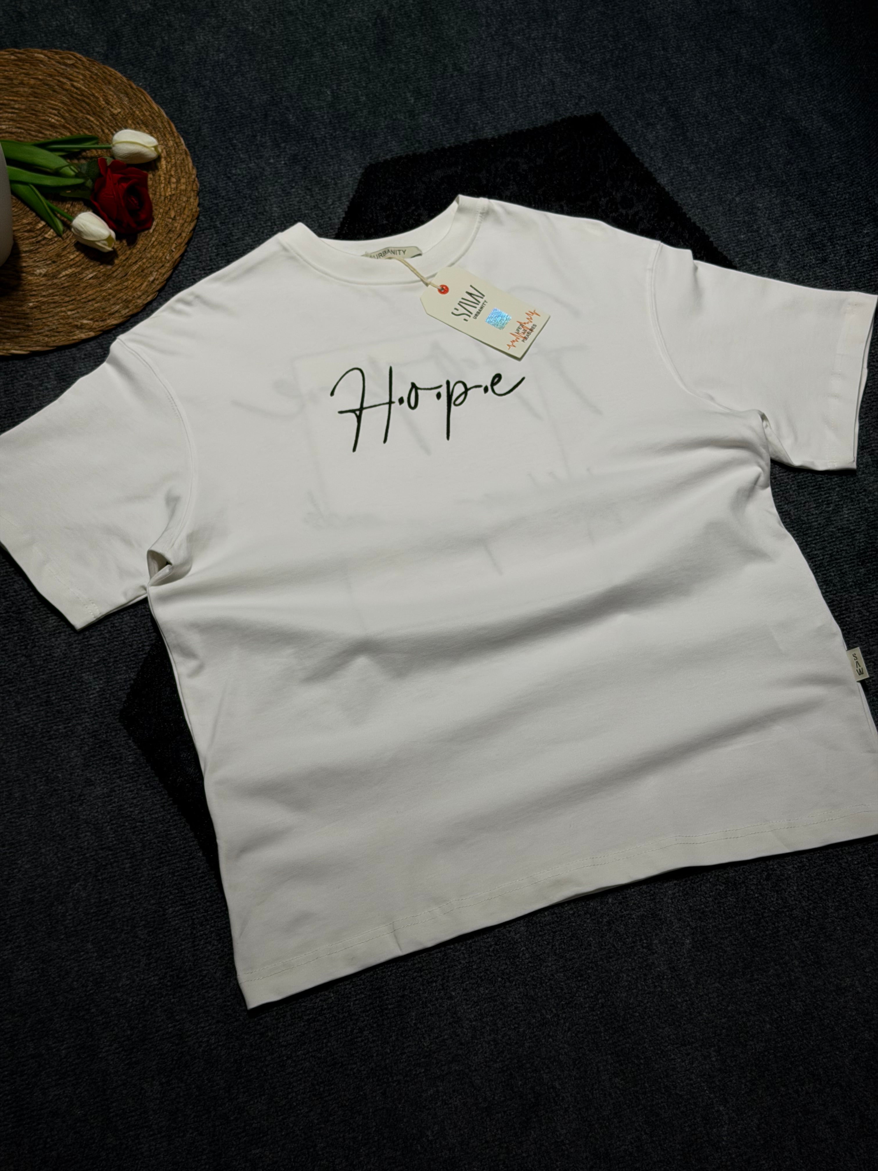 Hope Nakış Baskılı Oversize T-shirt Beyaz