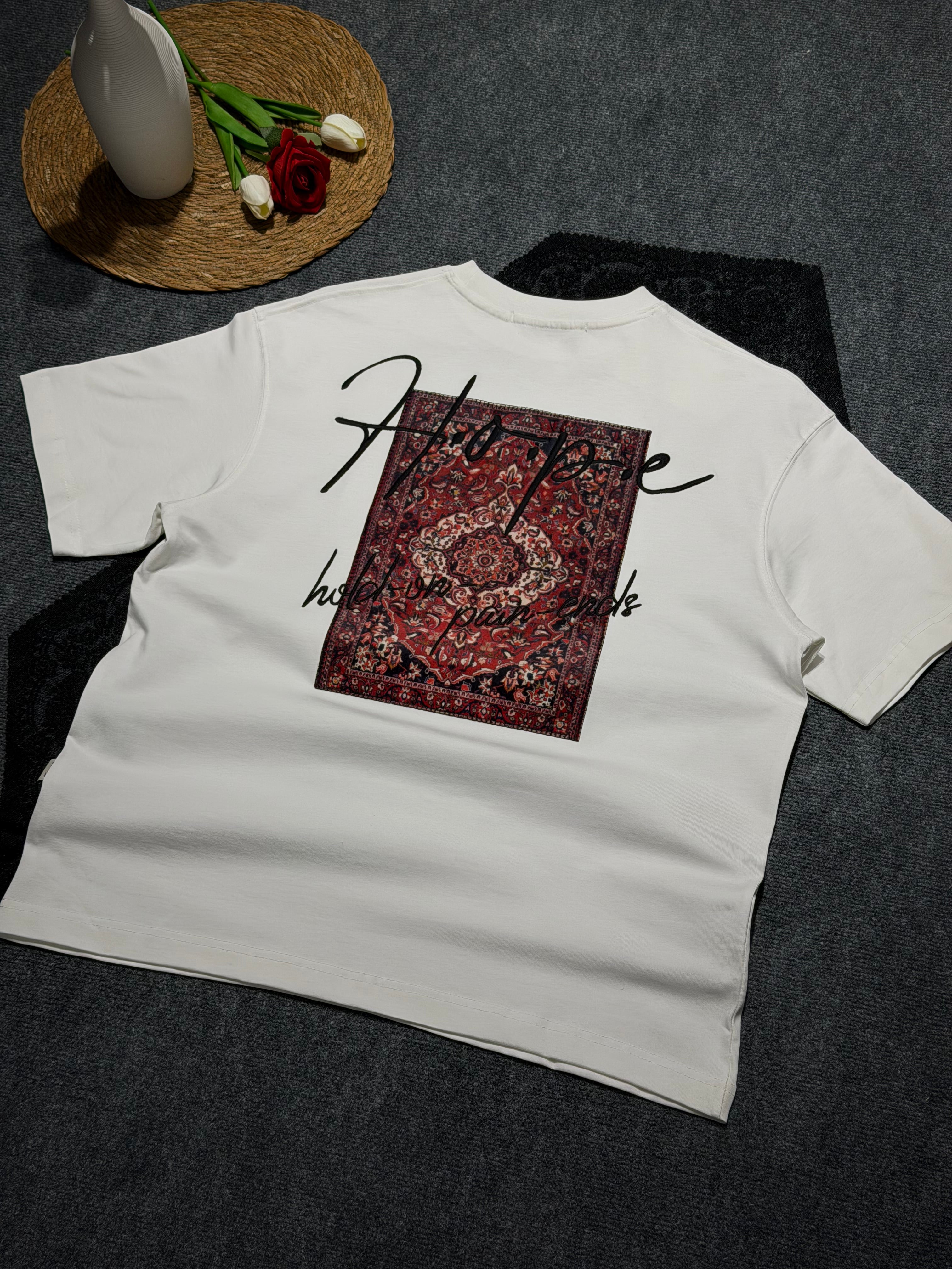 Modern ve özgün baskı tasarımıyla öne çıkan oversize tişört, %100 pamuk kumaşı sayesinde gün boyu rahatlık sağlar. Nefes alabilen yapısı ile yaz-kış kullanıma uygundur. Rahat kesimi sayesinde streetwear ve günlük kombinler için idealdir.