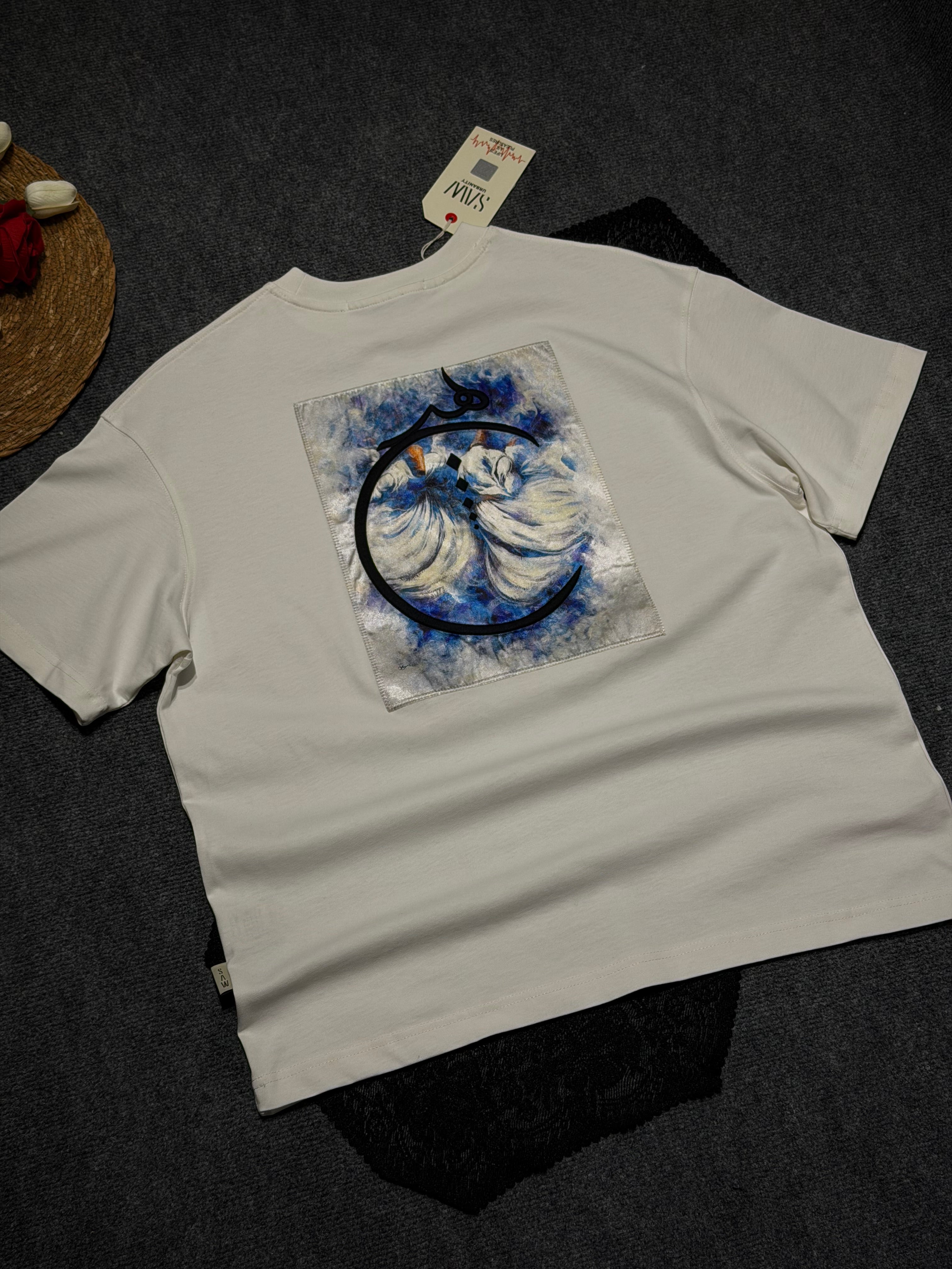 Mevlana Desenli Oversize T-shirt Beyaz