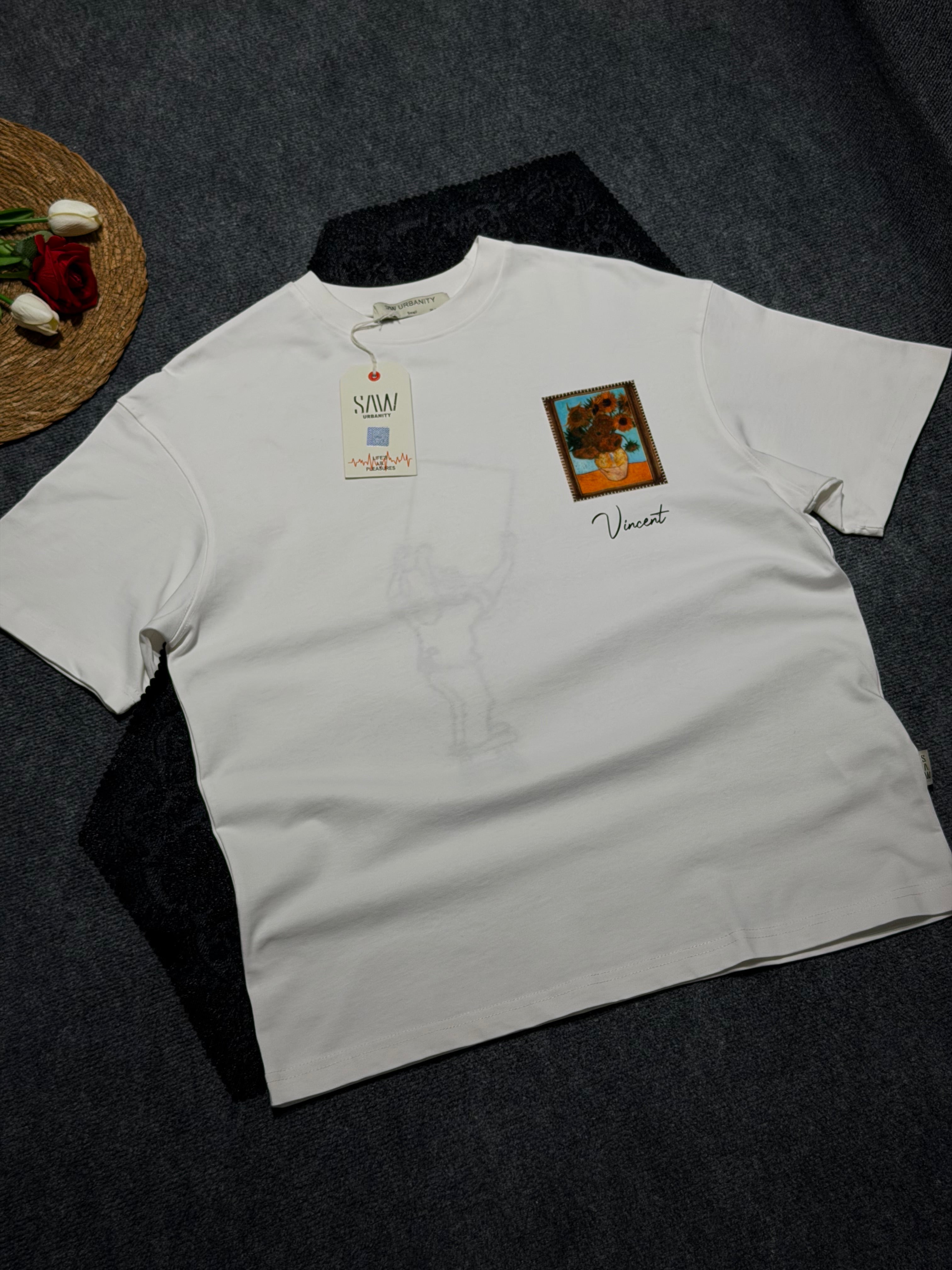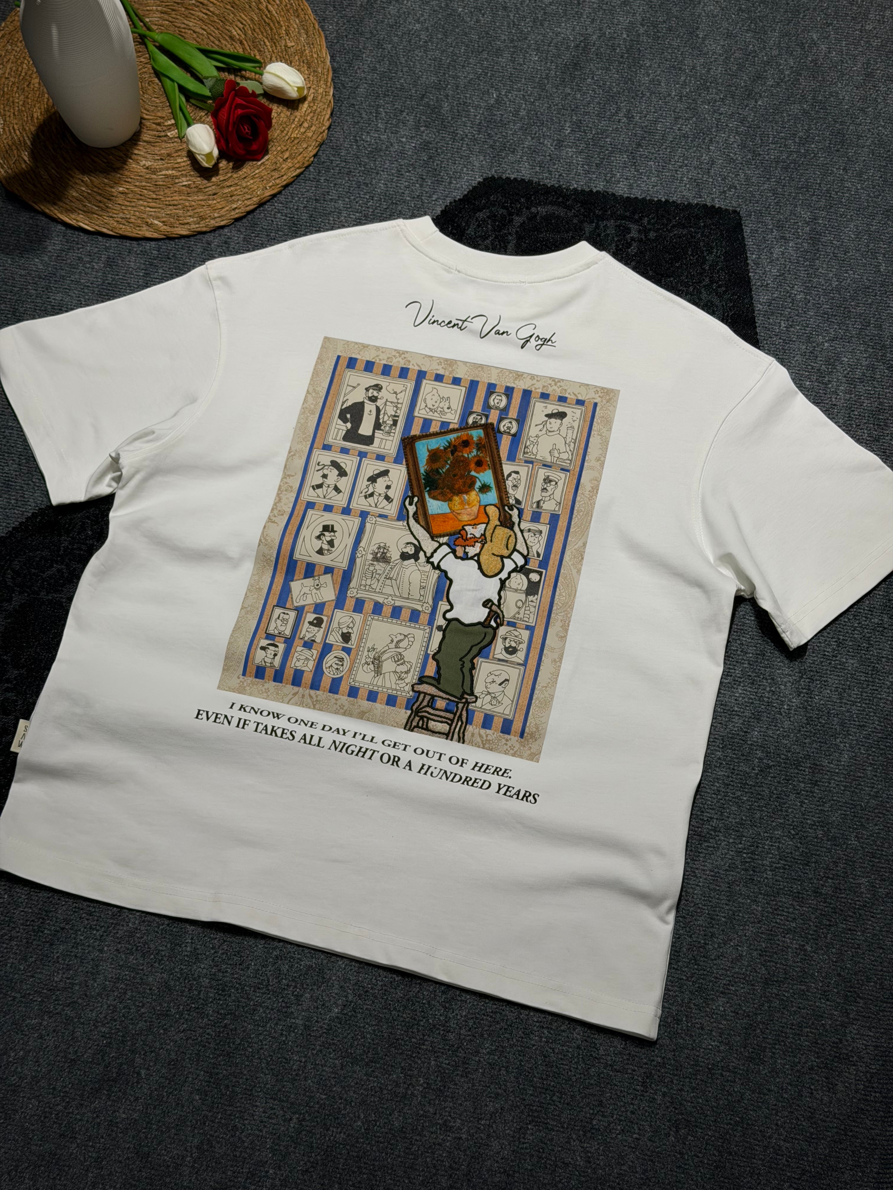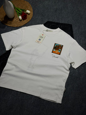 Vincent Van Gogh Baskılı Nakış Detaylı Oversize T-shirt Beyaz