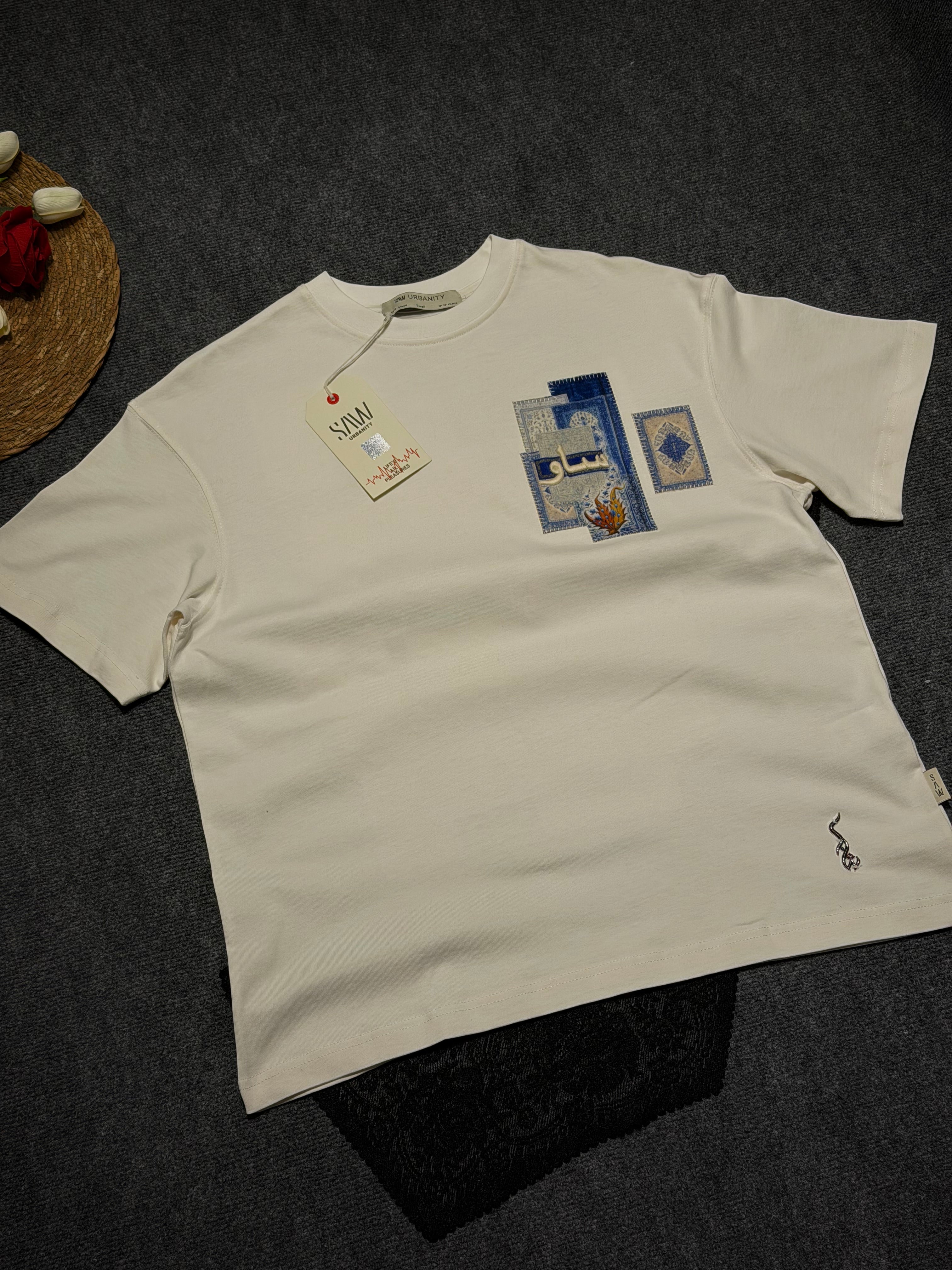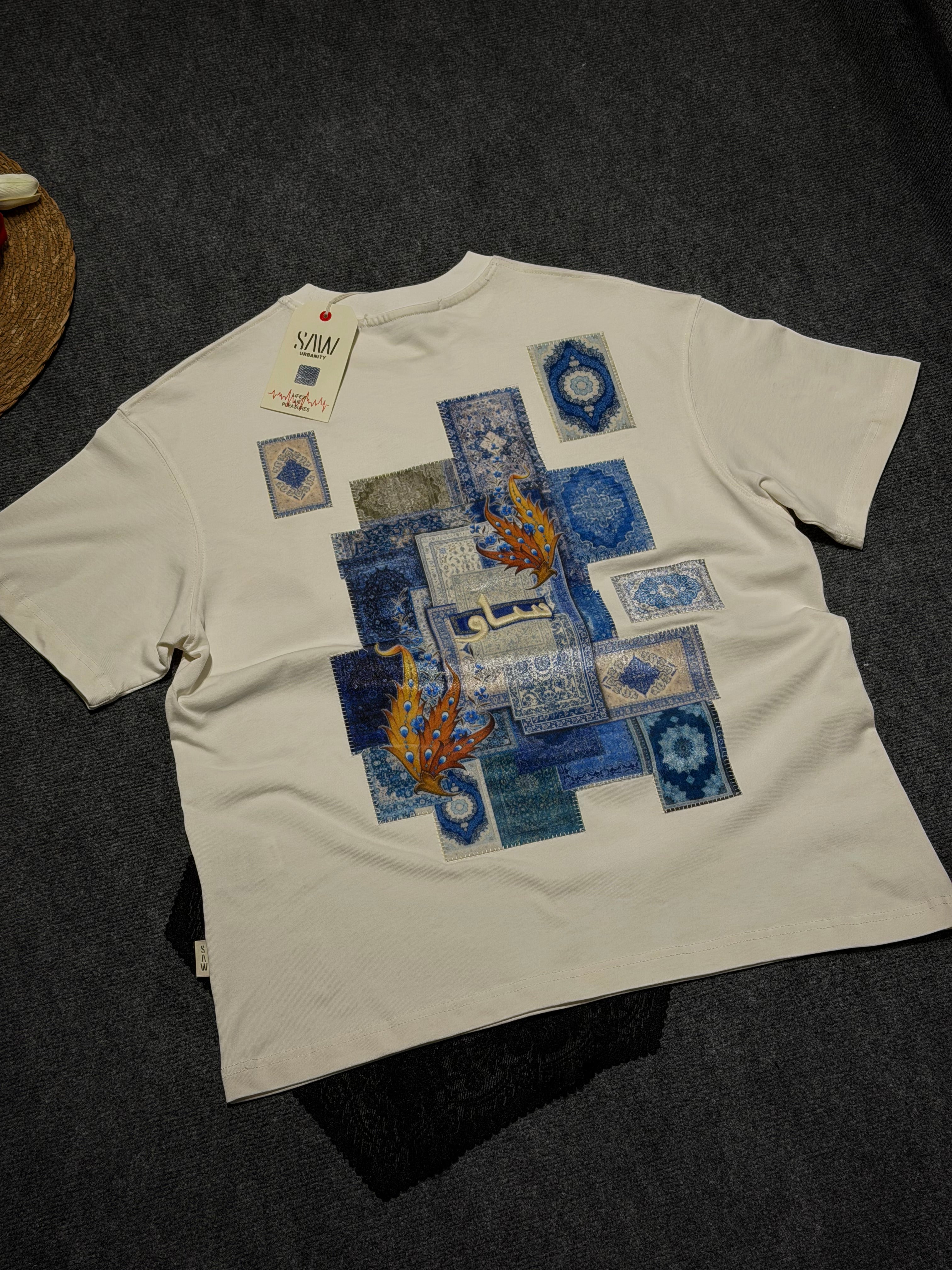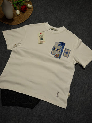 Yap Kilim Desenli Oversize T-shirt Beyaz